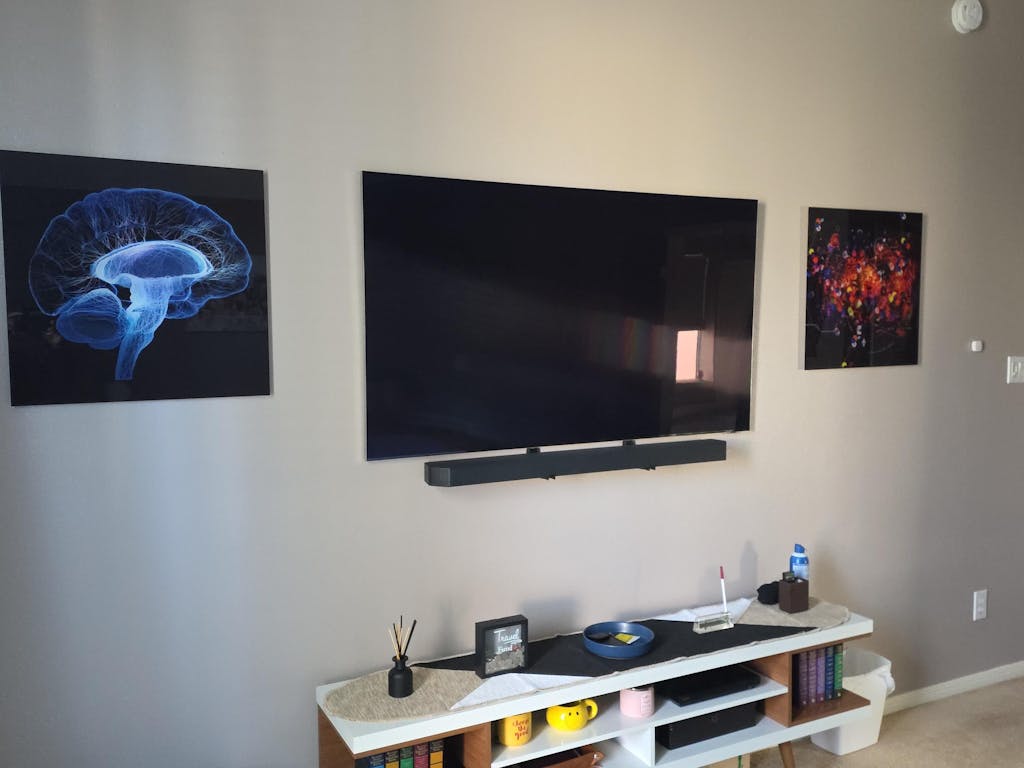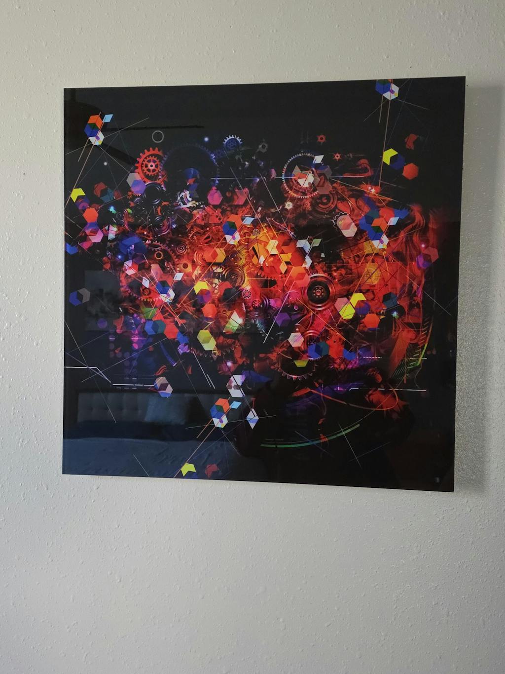 This was purchased to compliment my brain art to the right side of my 65 inch tv to give it balance. I love the pop of colors displayed on this art piece.