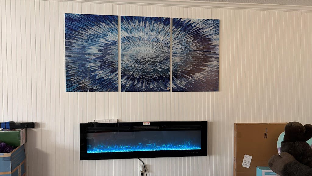 I purchased the tri panel blue textured glass piece. It arrived very quickly, everything in tact, no dents or breaks. Just had it hung (pic attached) and I love it. I had a long wall and needed a piece big enough for it. This artwork worked perfectly for the space. Thx too bad it won’t let me upload a pic