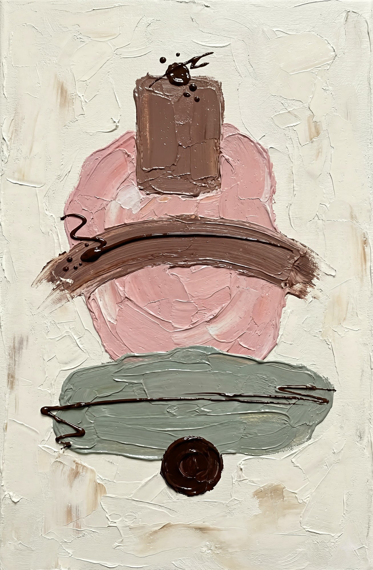 A tactile dialogue between organic forms and liquid motion. Mocha & Rose Abstract Stack features a sophisticated vertical composition of heavy impasto blocks in dusty rose, sage green, and rich chocolate brown. Utilizing our proprietary 3D haptic embossing on a premium aluminum panel, the thick, palette-knife textures and the dynamic "wet" drips are transformed into a physical relief that invites exploration through both sight and touch.